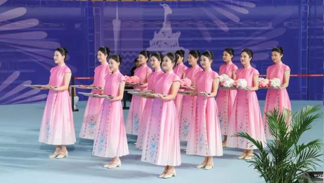 作为十五运会和残特奥会官方指定礼仪服饰企业,生活在左品牌设计的颁奖礼仪服装见证了体育健儿的每一个荣耀时刻。该系列服装以马面裙为灵感,采用粉白渐变色彩,裙摆上“一枝独秀”的牡丹图案象征着运动员追求卓越的体育精神。