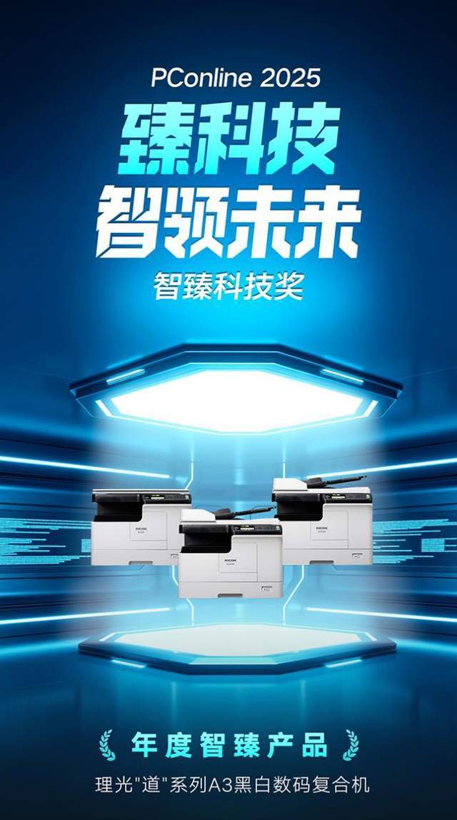 在企业数字化转型加速的当下,稳定高效的办公设备成为企业运营的关键支撑。理光“道”系列A3黑白数码复合机凭借对本土企业需求的深刻洞察,荣获PConline 2025智臻科技奖《年度智臻产品》大奖。