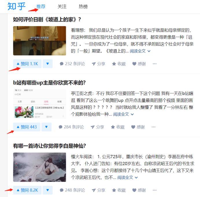 而在内容匹配机制上,知乎选择推荐的既不是“熟人圈中的好友认定”,也不是“用户个人的偏好水平”,而是整体用户用“点赞”这一行为所选举出的优质内容。