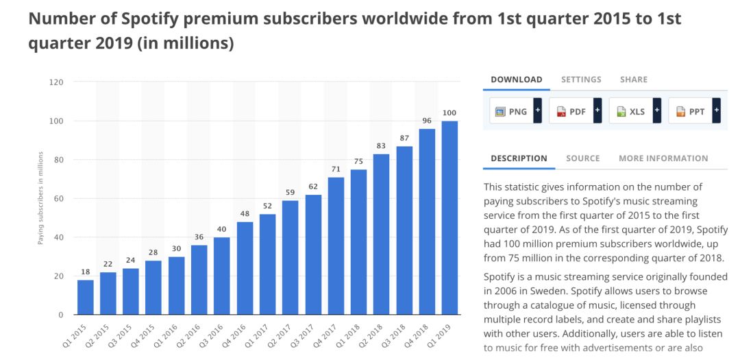 iPhone 诞生一年后,Spotify 正式上线,成为了后来能够挑战苹果音乐地位的软件服务商。至今,Spotify 的付费订阅用户已经突破 1 个亿。
