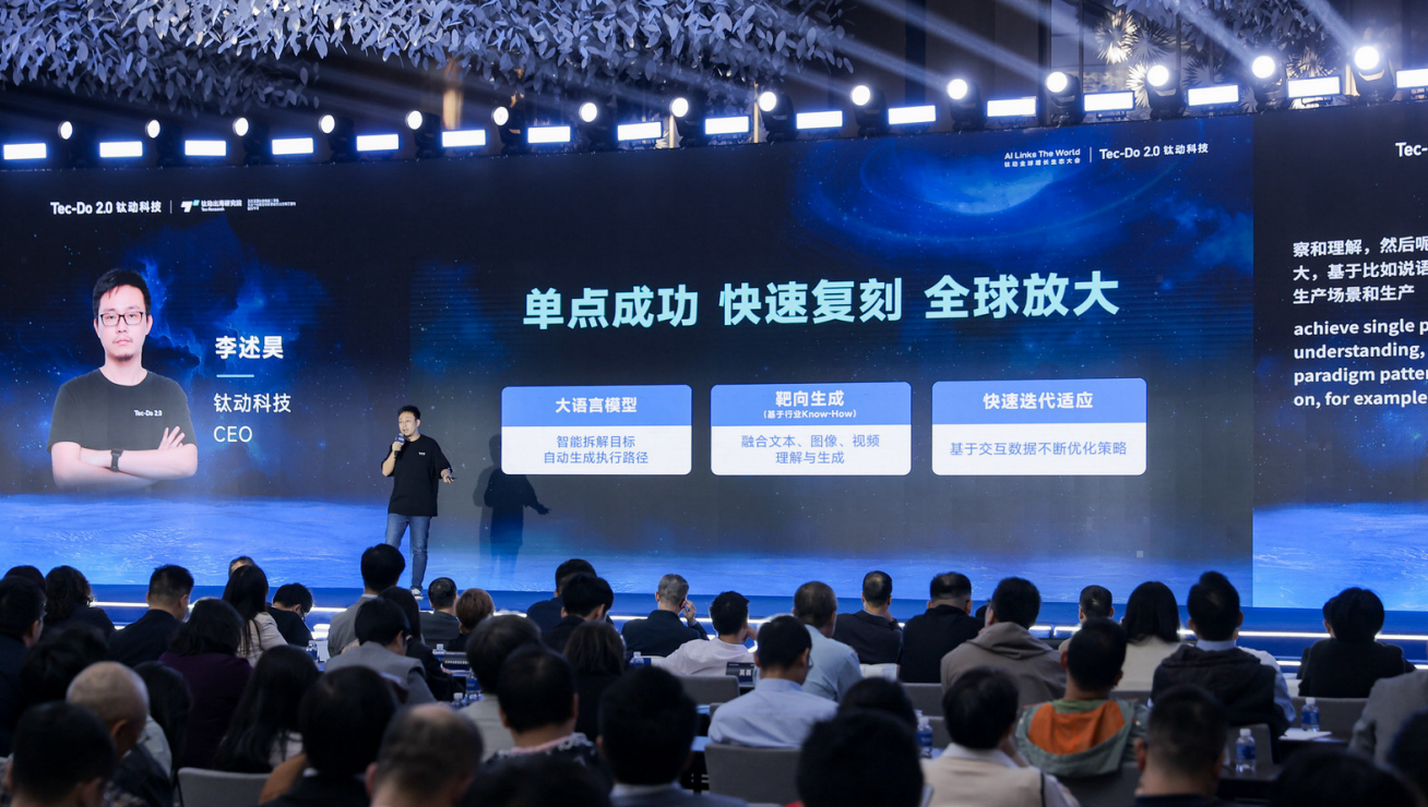 两大全新AI技术的正式亮相,标志着钛动科技完成了AI技术驱动型公司的角色升级。李述昊在主题演讲中表示,AI技术发展正从通用能力建设进入垂直场景落地的关键阶段。“如果说大模型完成了通识义务教育,那么现在AI已进入求职阶段,要走进具体产业和场景,在具体业务中创造可验证的价值。”